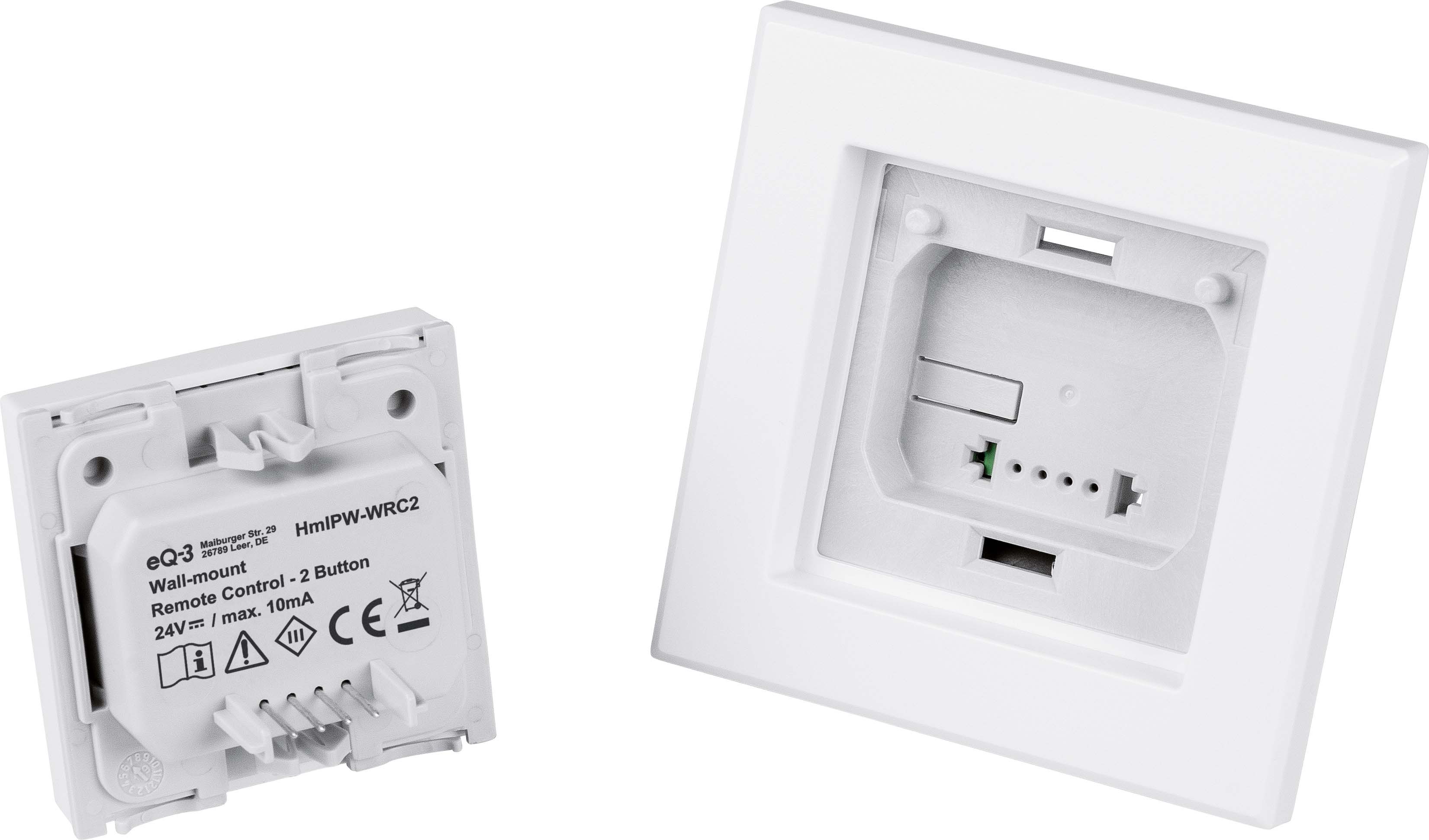 Der Wandtaster lässt sich einfach in bestehende Schalterserien im 55er-Rahmenmaß führender Hersteller integrieren (eine Übersicht der kompatiblen Hersteller steht unter www.homematic-ip.com zur Verfügung).