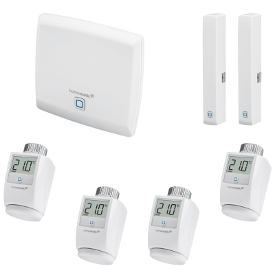 Produktinformationen "Homematic IP Starter Set Heizung - 1x HmIP-HAP, 4x HmIP-eTRV-2, 2x HmIP-SWDO-2"